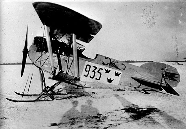 "Urphönixen" vilken erhöll nummer 935 och med vilken "Phönixepoken" inleddes. Bilden är tagen på Flygkompaniets flygfält, Malmen. Foto: Okänd fotograf / Flygvapenmuseum (CC-PDM) |