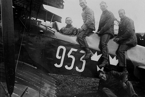 Grupporträtt 1923 vid Phönixjagare nr 953 ur Flygkompaniet. Foto: Okänd fotograf / Flygvapenmuseum (CC-PDM) |
