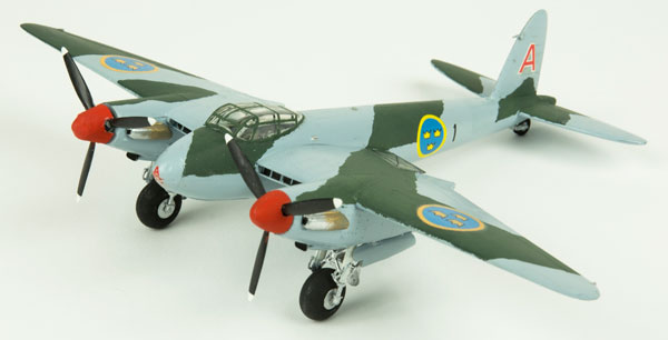 Modell av J 30 Mosquito i skala 1:72. Foto: Stina Hedvall / Flygvapenmuseum (CC BY beskuren). |