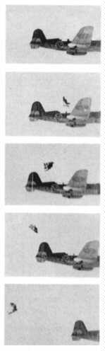 Det första praktiska utskjutningsförsöket med tryckluftsdriven stol ägde rum den 8 januari 1942 från en B 3, som flögs med en hastighet av 280 km/tim. Stolen var monterad i bakre övre ksp-skyttens position. Stolen hade monterats en 80 kg tung provdocka. Försöket avlöpte helt enligt förväntningarna och ekipaget passerade planets stjärtparti med 4 meter tillgodo. Tyvärr initierades utskjutningen tidigare än beräknat, varför följeflygplan med fotograf missade händelsen. Den finns sålunda tyvärr ej fotodokumenterad.