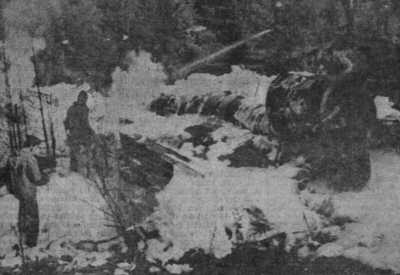 Fpl 35309 råkade ur för minuslandning 1964-03-06 vid fält 32, Heden, Boden. Foto: Från SFF. |