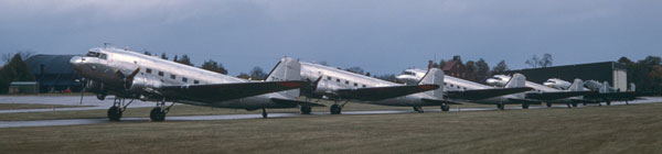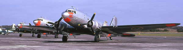 79004 | 19771 C-47A-80-DL | 1944 19521016 1983? | 43-15305 OY-DDY LN-LMR 7-74 7-794 13-794 | Märkt "Trym Viking" vid reg OY-DDY (eller LN-LMR?). 1952 till FV för FJS behov, döpt "Örnen". Drifttid: 16.473 tim. 1984 till Transport Aerien, Zaire, som 9Q-CYE. 2013 skrotad. |